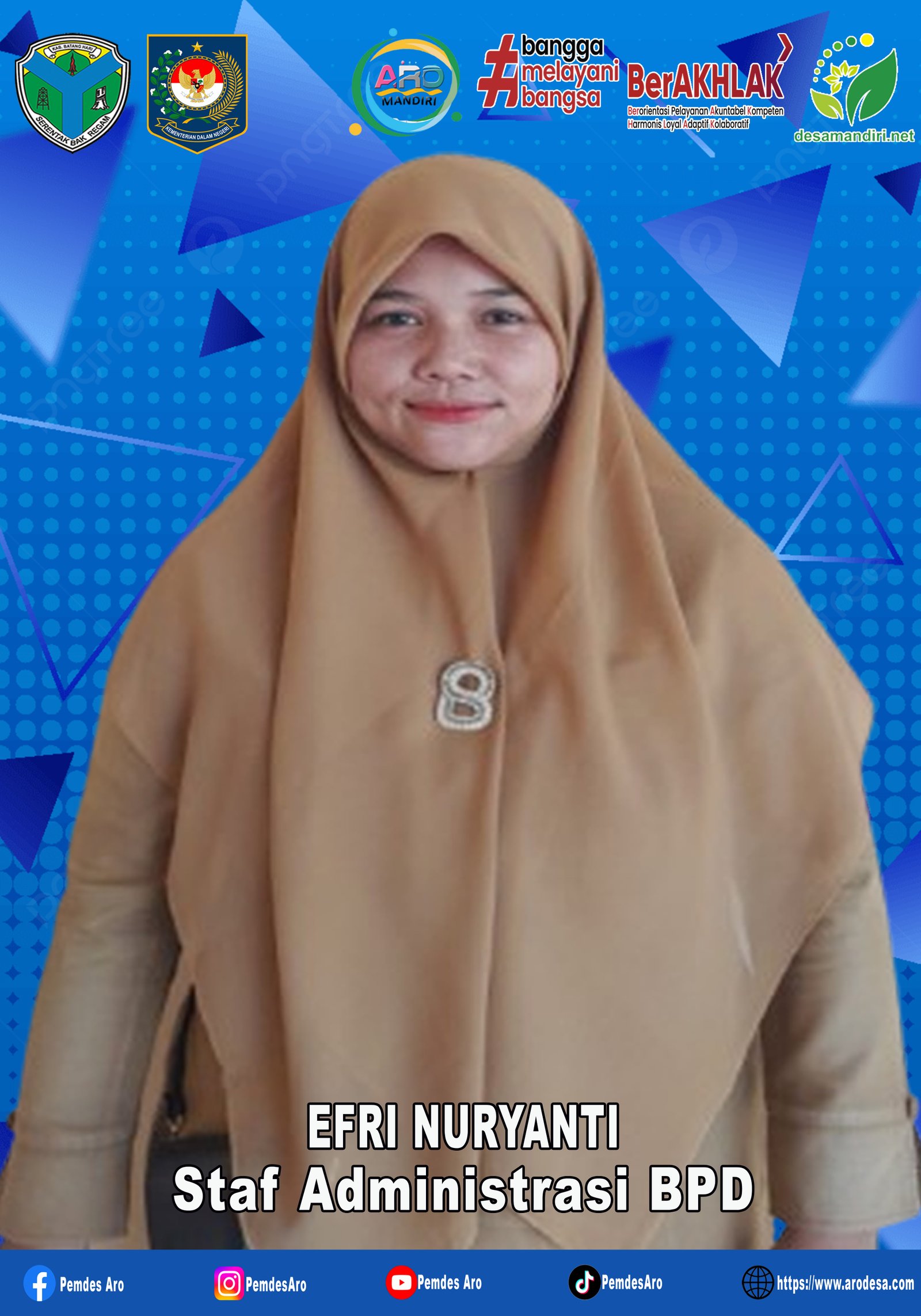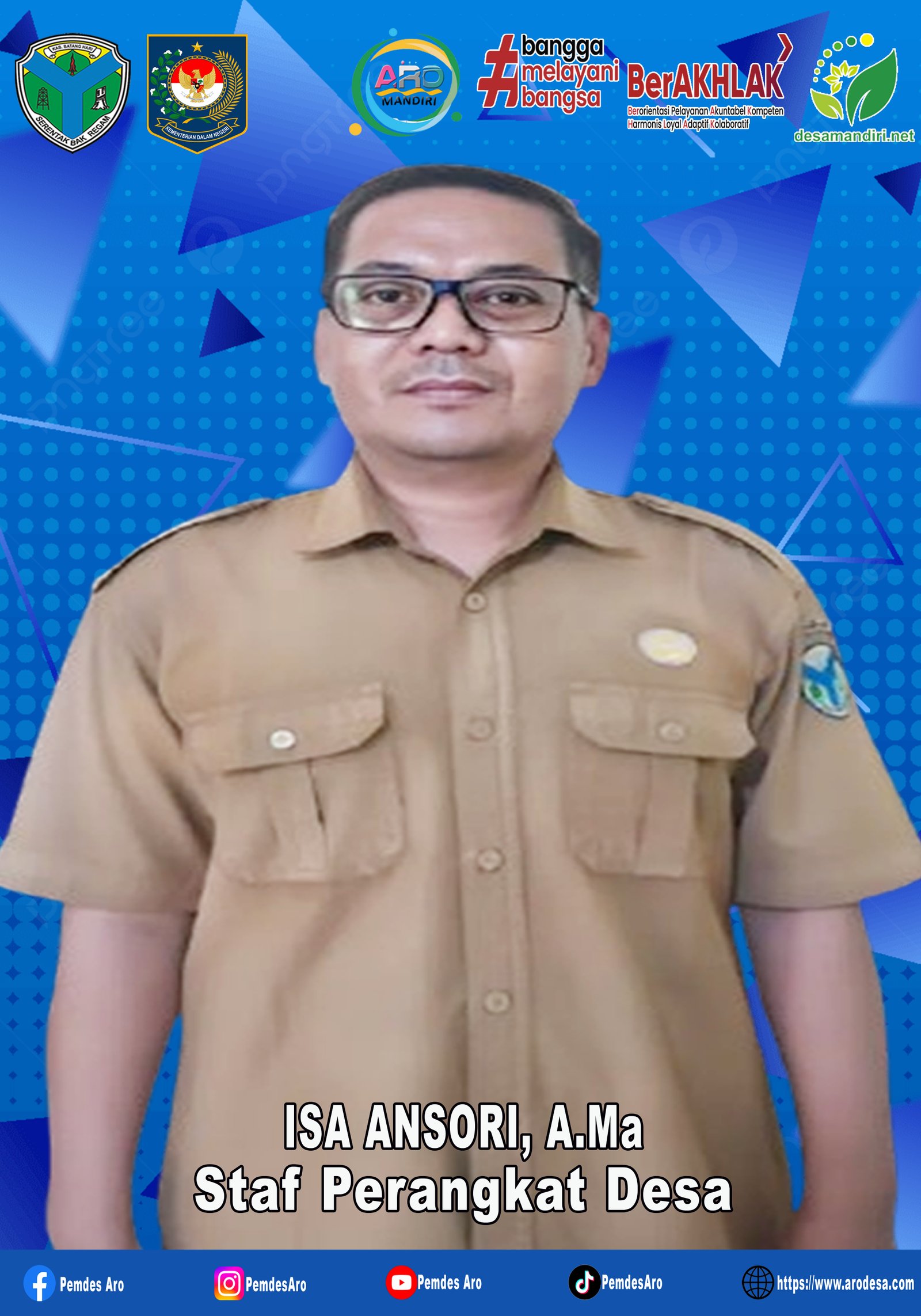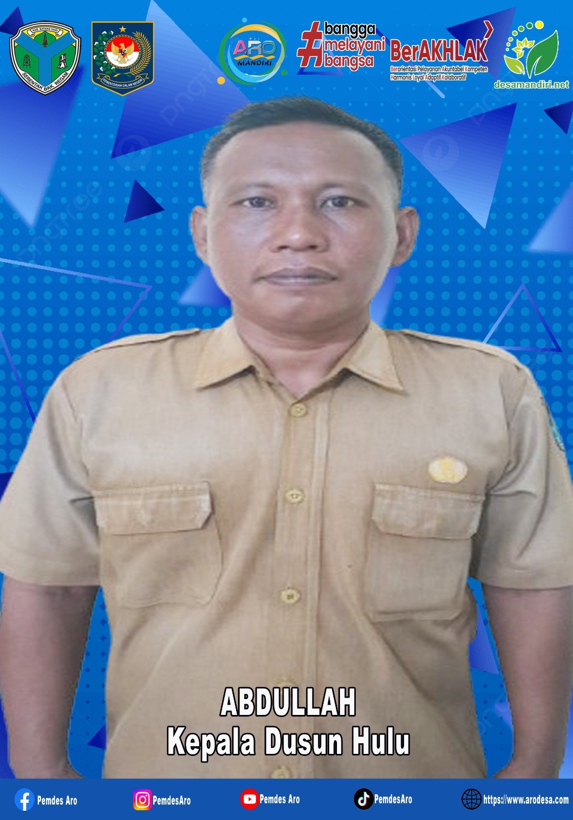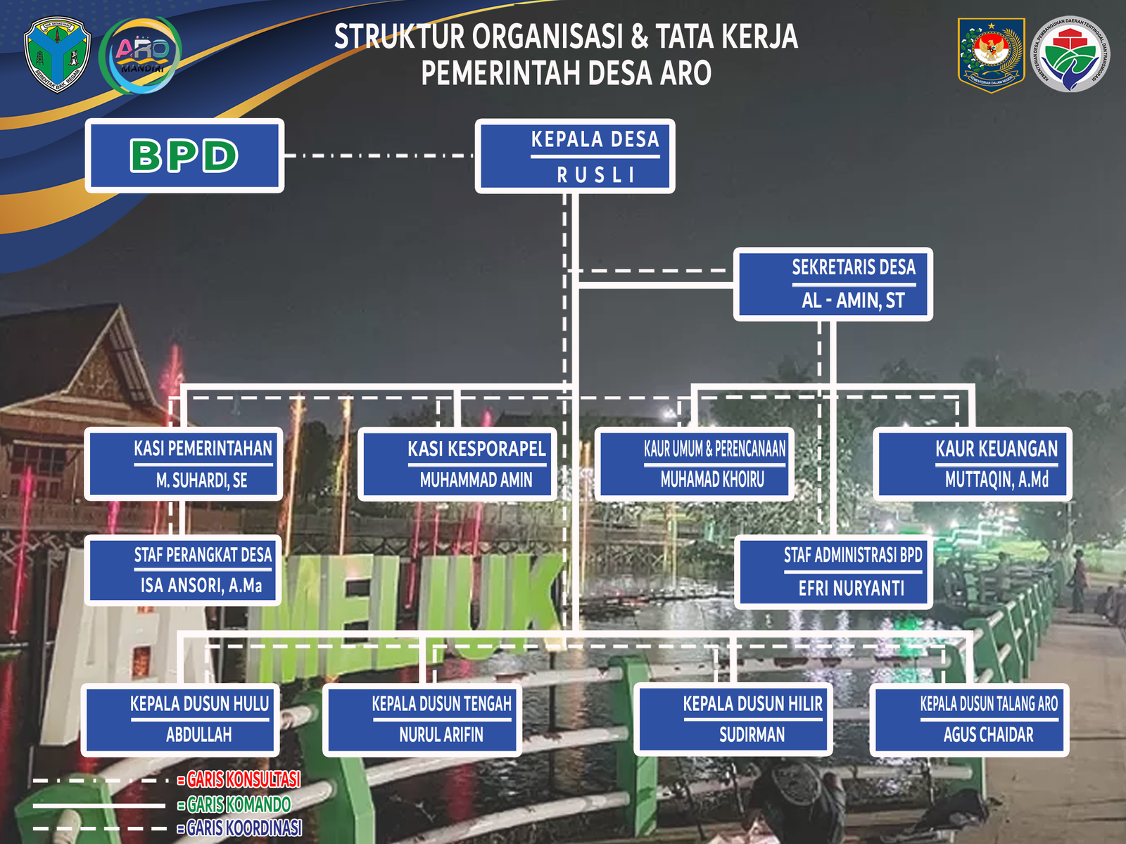 VISI : “Melayani Masyarakat Secara Menyeluruh Demi Terwujudnya Desa Aro Maju, Mandiri, Sehat, Sejahtera Dan Berakhlakul Karimah"